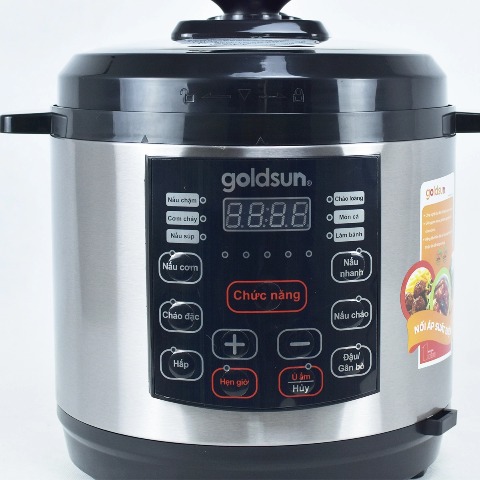 - Nồi áp suất đa năng Goldsun điều khiển cơ bằng núm xoay, dễ dàng lựa chọn chế độ nấu với chỉ dẫn bằng tiếng Việt. Mỗi chế độ nấu đã được cài sẵn nhiệt độ , áp suất và thời gian nấu phù hợp