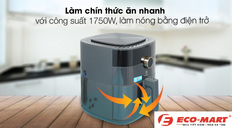 Nồi chiên không dầu Electrolux E6AF1-520K có công suất 1750W giúp chín nhanh thực phẩm.