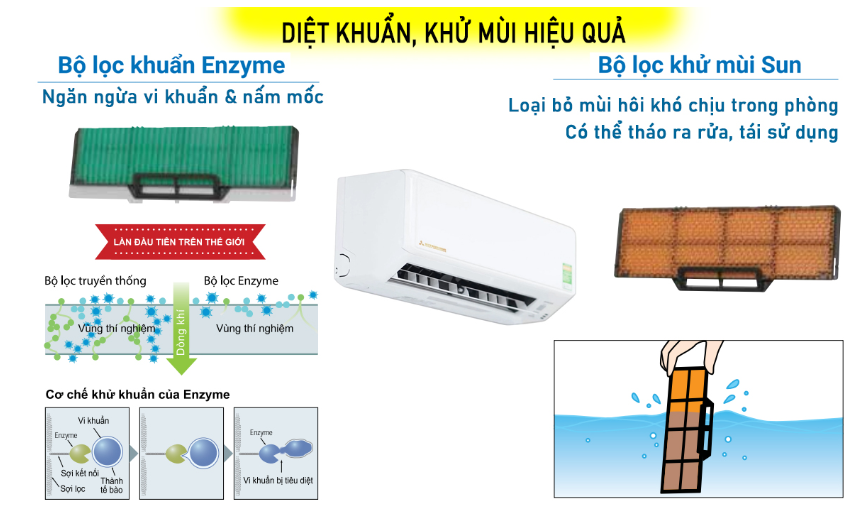 2. Bộ lọc khí khử mùi – Tự tạo ion âm làm sạch không khí.