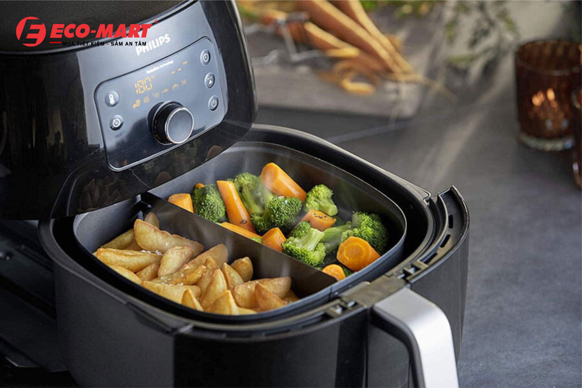 1. Nồi chiên không dầu giúp tiết kiệm lên đến 85% lượng dầu ăn sử dụng.