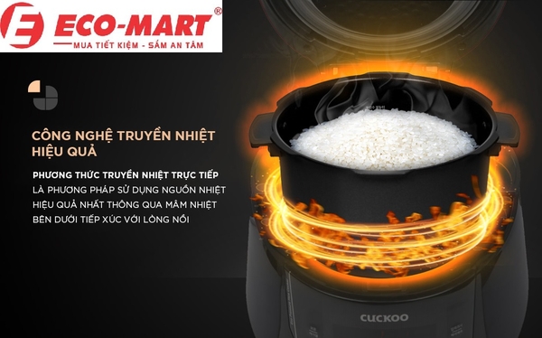 - Sử dụng công nghệ truyền nhiệt trực tiếp, truyền nhiệt nhanh, tản nhiệt đều, giúp cơm chín đều, dẻo thơm.