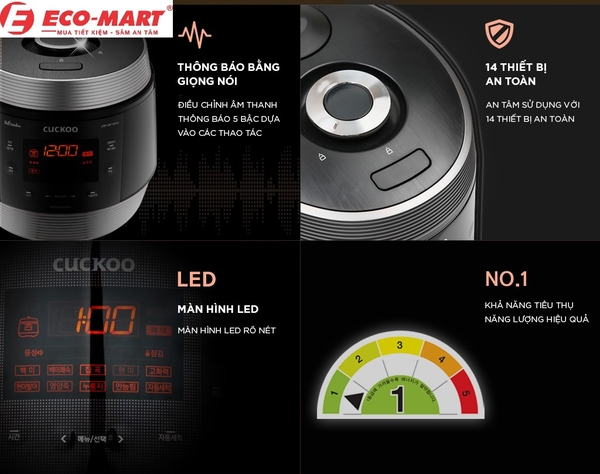 - Nồi cơm điện điện tử Cuckoo trang bị thông báo bằng giọng nói, bạn có thể tăng giảm 5 mức âm thanh khác nhau