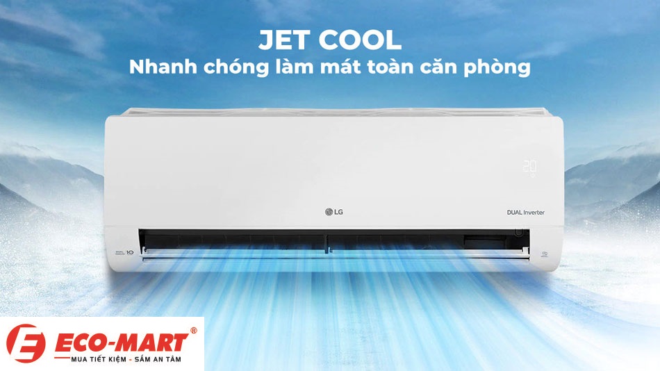 Nhu cầu làm mát nhanh chóng trong những ngày hè nóng bức là điều mà hầu hết mọi gia đình đều mong muốn. Điều hòa LG 1 chiều V24WIN1 đáp ứng trọn vẹn yêu cầu này với công nghệ Jet Cool. Tính năng này giúp làm lạnh căn phòng chỉ trong vài phút, mang lại cảm giác mát mẻ tức thì sau một ngày dài làm việc mệt mỏi. Jet Cool hoạt động dựa trên cơ chế tăng cường dòng khí lạnh với tốc độ cao, giúp hạ nhiệt độ phòng một cách nhanh chóng và đều khắp. Điều này không chỉ tiết kiệm thời gian chờ đợi mà còn tối ưu hóa hiệu suất sử dụng năng lượng của thiết bị.
