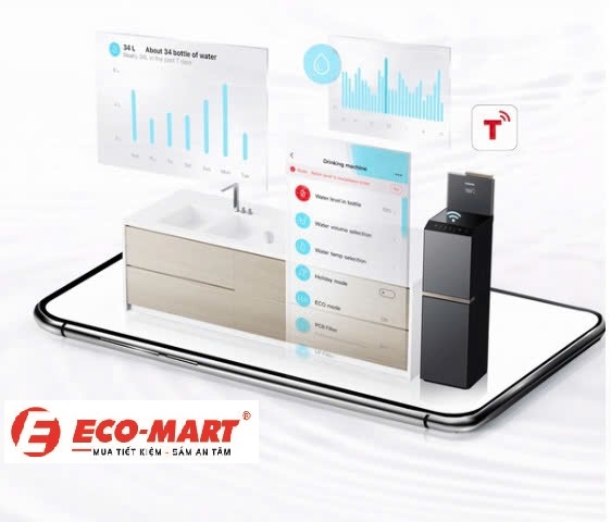Máy tích hợp công nghệ IoT cho phép người dùng điều khiển và theo dõi hoạt động của máy thông qua ứng dụng TSmartLife trên smartphone. Bạn có thể theo dõi thời gian thay lõi, nhiệt độ nước, và tình trạng hoạt động của máy mọi lúc, mọi nơi, giúp đảm bảo nước luôn tinh khiết.