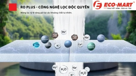 Công nghệ RO Plus giúp loại bỏ tới 99,99% virus, vi khuẩn, kim loại nặng và các chất rắn hòa tan, giữ lại khoáng chất có lợi.