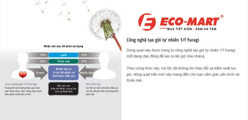 Công nghệ Yuragi tạo ra luồng gió tự nhiên, nhẹ nhàng và êm ái. Khi hoạt động, quạt trần tạo ra những luồng gió liên tục đổi chiều ngẫu nhiên, giúp giảm thiểu tác động của gió lên cơ thể và tạo cảm giác thoải mái.