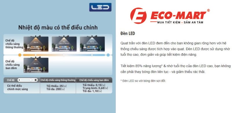 Đèn LED có độ sáng cao và tuổi thọ lâu dài, không chỉ mang lại ánh sáng tự nhiên mà còn giúp tiết kiệm năng lượng và chi phí thay thế đèn.