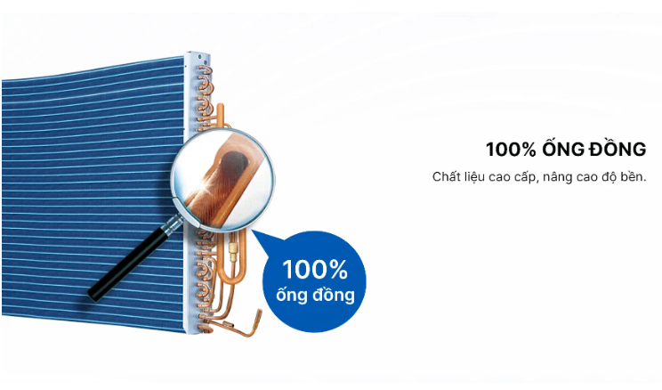 Dàn lạnh và dàn nóng sử dụng ống dẫn gas bằng đồng nguyên chất cho khả năng: