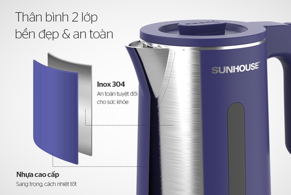 Nổi bật với thiết kế hiện đại, tinh tế, màu sắc trang nhã, ấm siêu tốc inox 2 lớp 1.8L SUNHOUSE SHD1355 là sự lựa chọn phù hợp cho những căn bếp hiện đại. Ấm có dung tích lớn 1.8 lít cùng công suất hoạt động cao (1500W) giúp việc đun nước nhanh chóng hơn, tiết kiệm thời gian và điện năng tối đa. Không chỉ là một thiết bị nhà bếp, ấm siêu tốc SUNHOUSE SHD1355 còn là một vật trang trí tinh tế cho căn bếp, thể hiện mắt thẩm mỹ của chủ nhà.