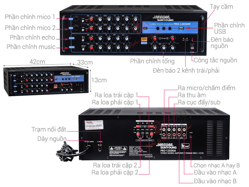 Amply Jarguar Pro 1203KM dễ dàng phối ghép với các thiết bị khác trong bộ dàn.