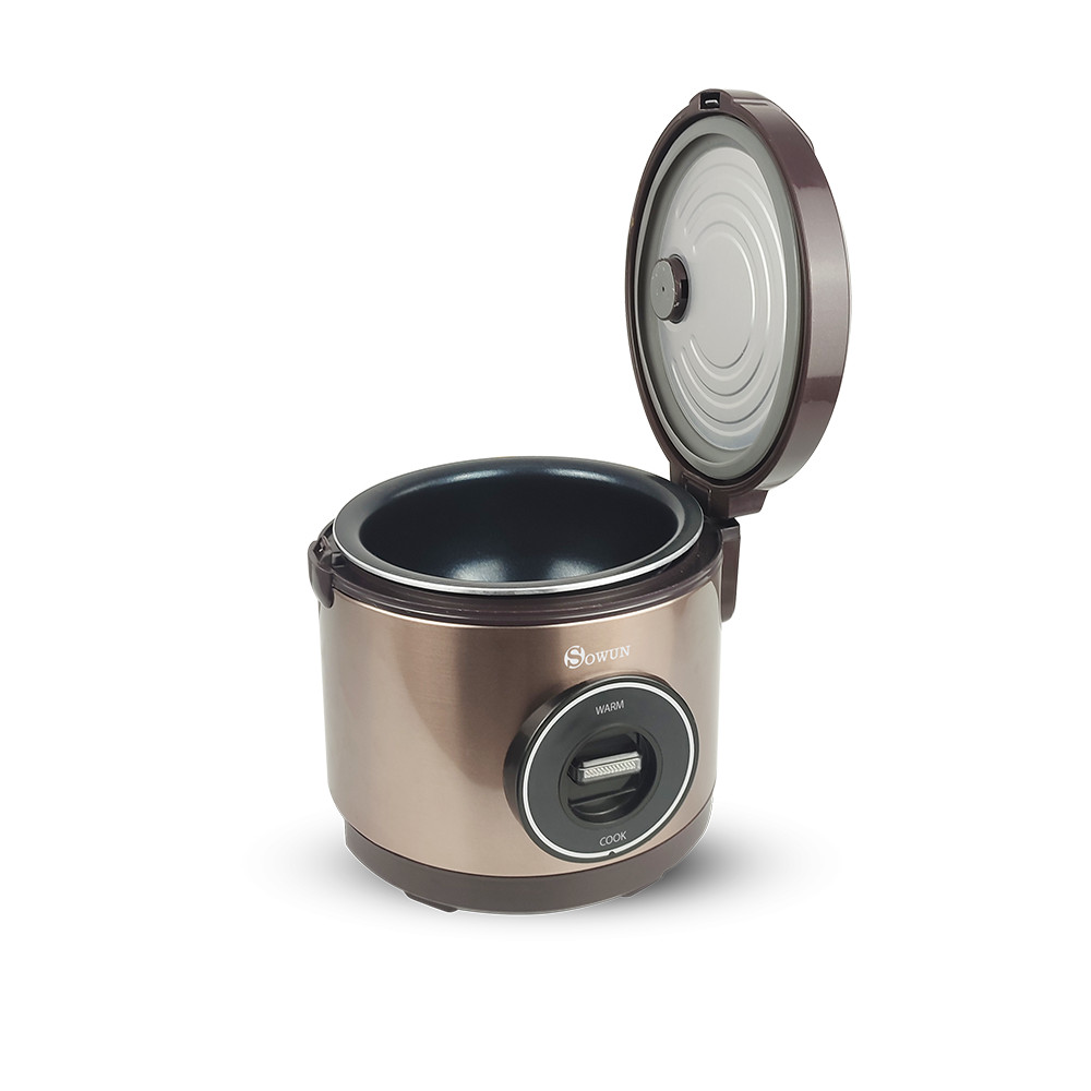 - Nồi cơm điện SOWUN SW609 có thiết kế đơn giản, mềm mại với gam màu xanh than bắt mắt cảm giác tao nhã sạch sẽ, tạo cảm hứng nấu nướng cho người nội trợ và tô điểm thêm cho gian bếp.