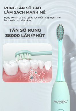 Sức mạnh làm sạch của Magic B-20 đến từ động cơ tần số cao tạo ra 38.000 rung động mỗi phút. Tần số rung động mạnh mẽ này giúp tạo ra lực chải răng vượt trội, làm sạch mọi khe răng và loại bỏ mảng bám hiệu quả, ngay cả ở những vị trí khó tiếp cận nhất mà bàn chải thường không thể làm được.