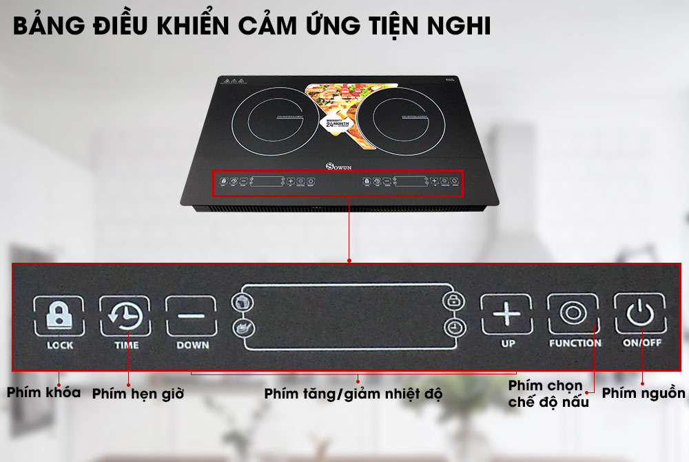 - Bếp điện đôi hồng ngoại Sowun SW1219 thuộc dòng bếp dương, kết hợp âm đem lại sự tiện lợi khi nấu ăn cho người dùng