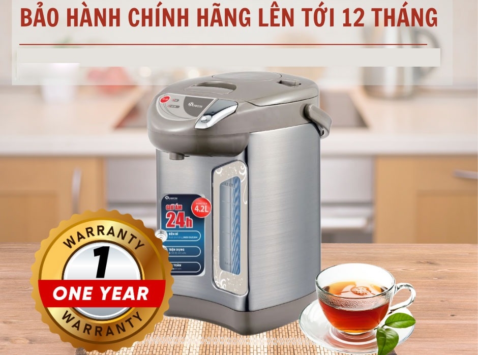 Sở hữu dung tích lớn 4.2 lít, bình đáp ứng tốt nhu cầu sử dụng nước nóng liên tục cho gia đình đông người hoặc môi trường văn phòng. Bạn có thể dễ dàng pha trà, cà phê hay chế biến các món ăn nhanh mà không cần đun nước nhiều lần.