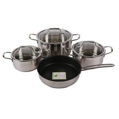 Bộ nồi Inox 3 đáy gồm 4 sản phẩm: 3 nồi phi 18cm, 20cm, 24cm và 1 chảo phi 24cm.
