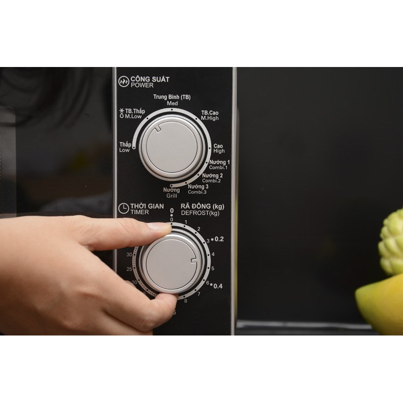 - Nướng: Ngoài các chức chính trên, cũng có nhưng lò vi sóng được tích hợp chức năng nướng bằng điện trở nhiệt. Khi sử dụng chức năng này, lò sẽ làm chín thực phẩm bằng điện trở nhiệt, cùng sóng vi ba 1 cách nhanh chóng, đều mà vẫn giữ được hương vị vốn có.