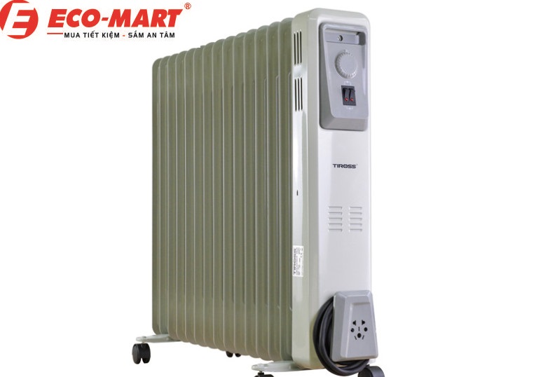 Máy sưởi dầu Tiross TS9219 có 15 thanh nhiệt phù hợp với diện tích phòng trên 30 m2