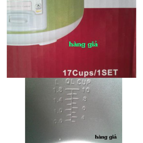 - Còn hàng giả, vỏ ghi 17 cups (cốc) gạo trong thì là 10 cốc gạo