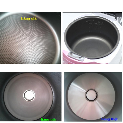 -Ngược lại, hàng giả có lớp vỏ thô, lớp sơn xấu, khuôn nhựa kém chất lượng, bề mặt rơ-le tiếp xúc sần sùi. Cầu chì bảo vệ của hàng giả lắp ở hông, ngưỡng nhiệt khoảng 200 độ, tiềm ẩn khả năng nồi điện bị đấu vào mâm nhiệt gây chập cháy, ảnh hưởng tới cả hệ thống điện của người dùng. Đó là chưa kể, ngưỡng nhiệt độ quá cao sẽ làm mất nhiều thành phần dinh dưỡng trong hạt gạo.