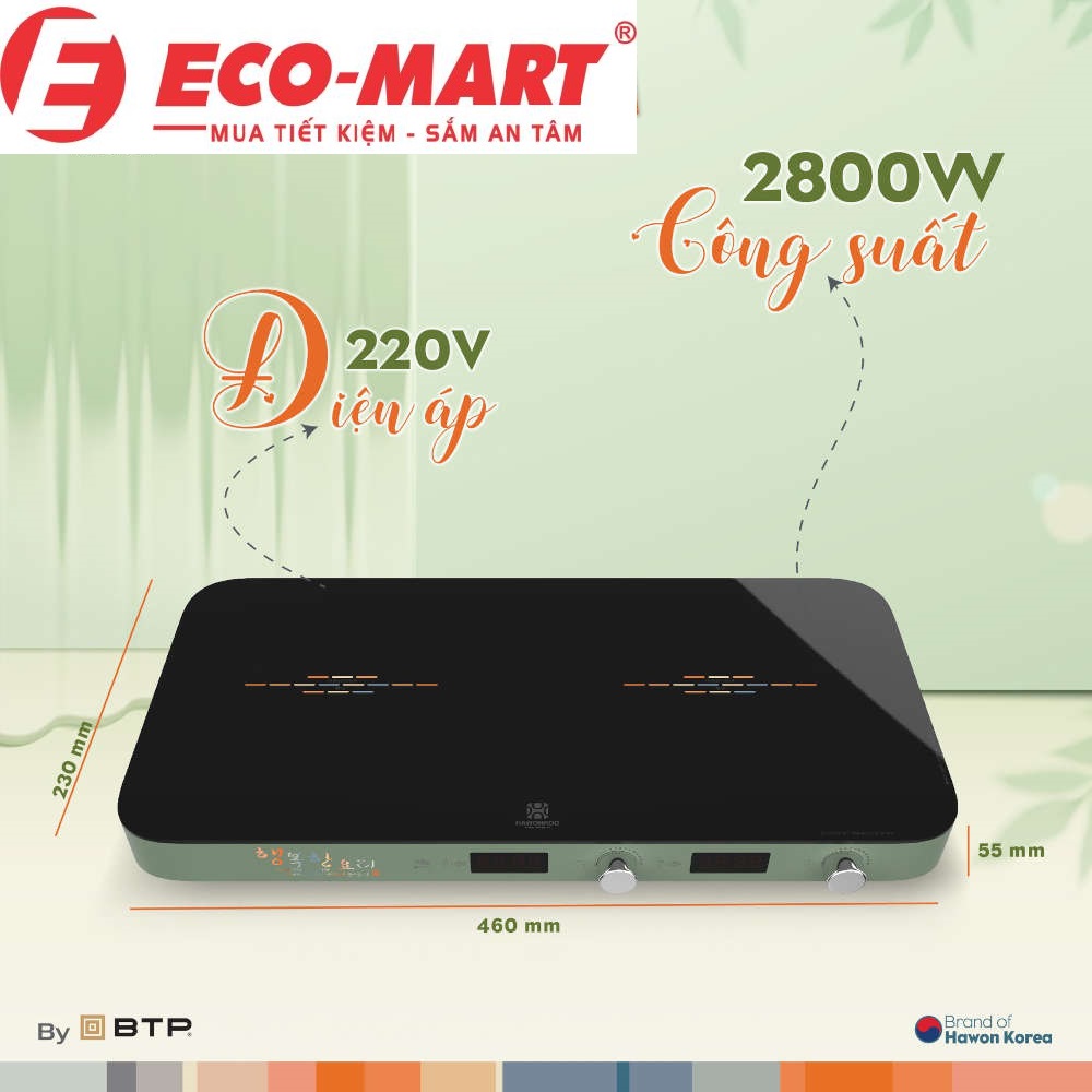 Bếp từ đôi Hawonkoo MCEH-200-II-GE, 2 cùng nấu độc lập, tích công nghệ inverter tiết kiệm điện