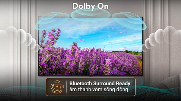 LG 65QNED75SRA có tổng công suất loa là 20W với 2 loa. Sản phẩm còn hỗ trợ âm thanh vòm Bluetooth Surround Ready và chế độ lọc thoại Clear Voice Pro. Người dùng cũng có thể kết nối với loa tivi.