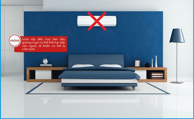 3. Không đặt dàn lạnh ở vị trí gió thổi trực tiếp vào đầu giường