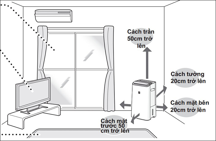- Vị trí đặt máy lọc không khí phải phù hợp: