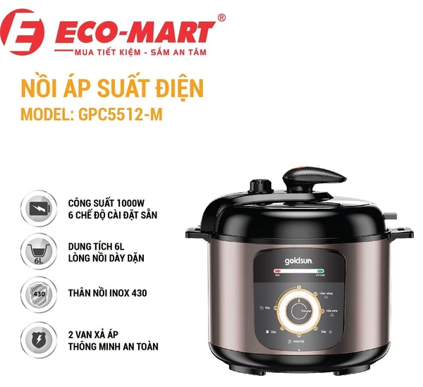 1- Tính năng và ưu điểm của nồi áp suất điện Goldsun GPC5512