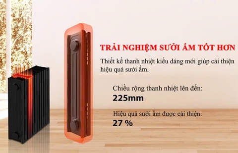 Thiết kế thanh sưởi độc đáo: Với cấu trúc đục lỗ, thanh sưởi của máy giúp nâng cao hiệu suất làm nóng lên đến 27%. Điều này có nghĩa là máy có khả năng làm ấm không gian nhanh chóng, mang lại sự thoải mái tức thì cho người sử dụng.