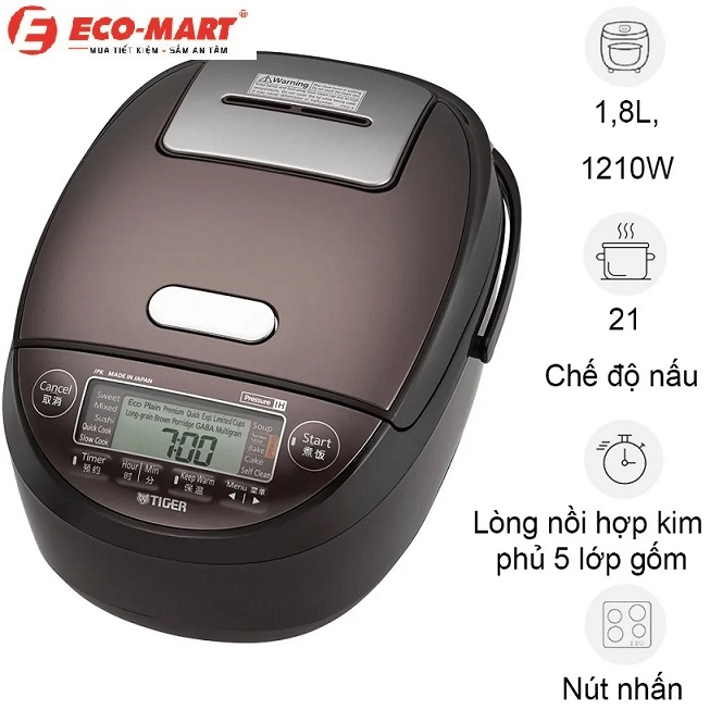 Nồi cơm điện cao tần áp suất Tiger JPK-W18W không chỉ mang lại những bữa cơm ngon mà còn giúp tối ưu hóa thời gian và công sức của người nội trợ. Với thiết kế hiện đại và các tính năng tiên tiến, đây là sự lựa chọn hoàn hảo cho mọi gia đình. Hãy để Tiger JPK-W18W trở thành người bạn đồng hành, mang lại những bữa ăn ấm cúng và đầy dinh dưỡng cho gia đình bạn. Để có mức giá tốt nhất các bạn hãy gọi ngay tới số hotline của siêu thị điện máy Eco-Mart nhé. 0974178586.
