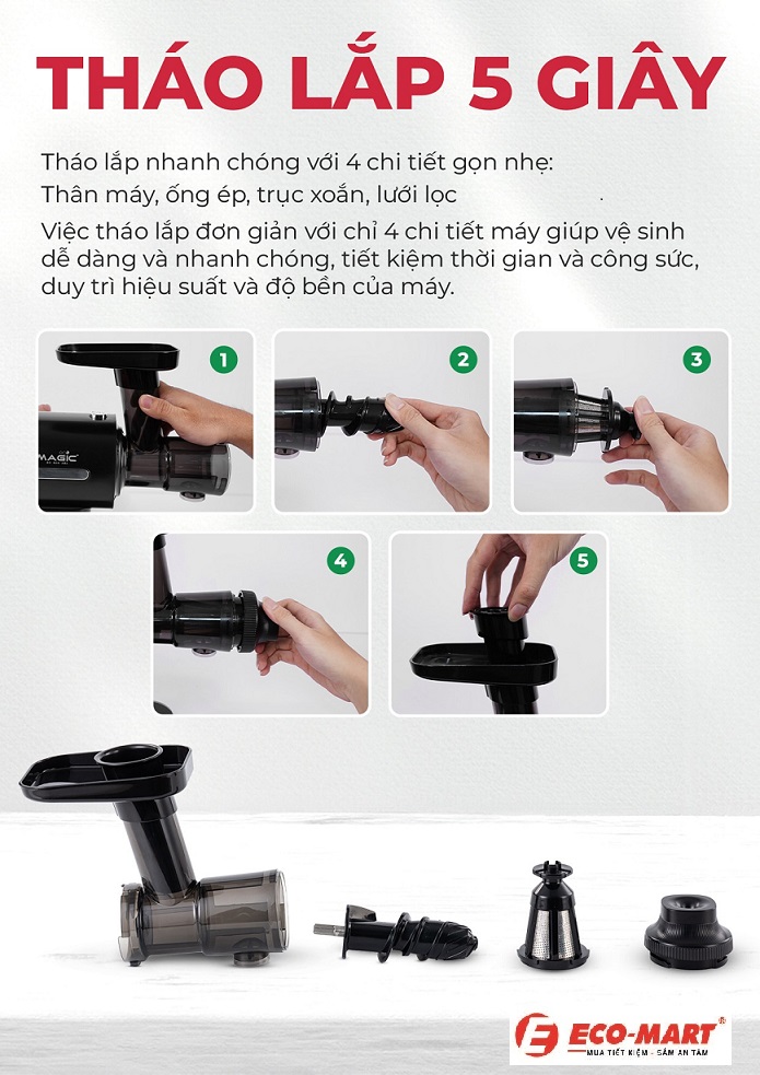 Magic AC-136 là lựa chọn lý tưởng cho những ai muốn tận dụng tối đa các dưỡng chất từ rau củ quả, với thiết kế trục ngang và công nghệ ép chậm tiên tiến. Máy ép chậm trục ngang Magic AC-136 không chỉ đáp ứng nhu cầu về dinh dưỡng mà còn mang đến trải nghiệm tiện lợi, an toàn, và dễ dàng vệ sinh. Để có mức giá tốt nhất các bạn hãy liên hệ ngay đến siêu thị điện máy Eco-Mart qua số hotline: 0974178586.