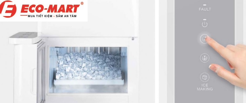 Dung tích hộp chứa đá lớn (1.4kg ≈ 140 viên) giúp bạn có đủ đá viên sử dụng hàng ngày, với tính năng tự động ngưng làm đá khi hộp chứa đầy.