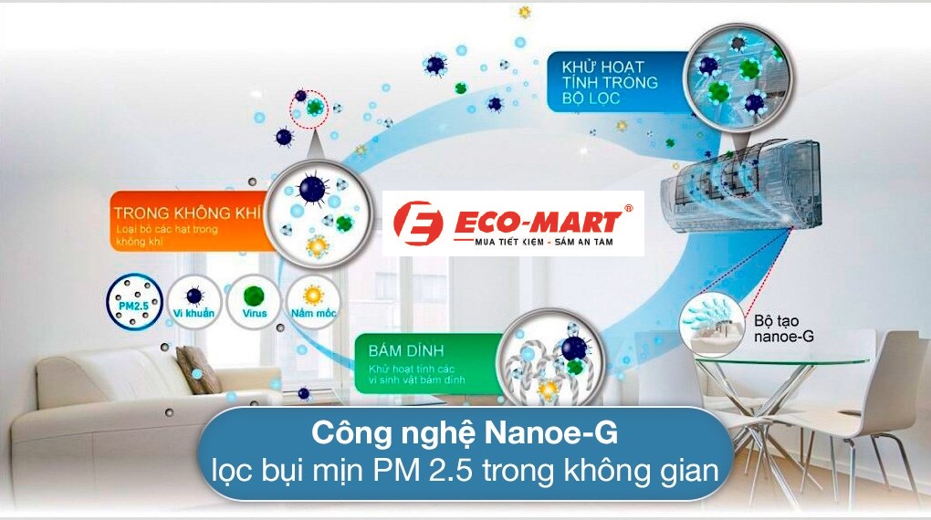 Công nghệ Nanoe-G lọc bụi mịn PM 2.5: Loại bỏ bụi mịn PM 2.5 và các hạt bụi khác, bảo vệ sức khỏe hô hấp.