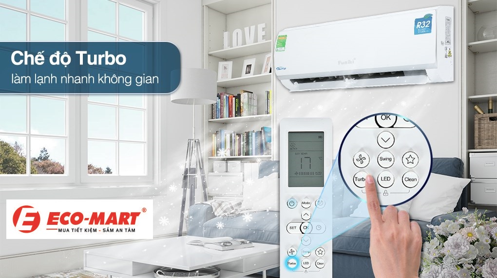 Chế độ Turbo giúp làm lạnh nhanh chóng và chức năng đảo gió 4 chiều đảm bảo không gian sống luôn mát mẻ và dễ chịu từ mọi hướng.