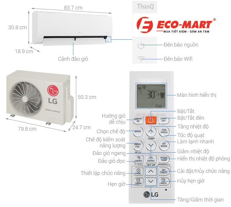 Điều hòa LG V13WIN1 1 chiều Inverter 12000BTU mới 2024 có gì đặc biệt khiến người tiêu dùng quan tâm tìm kiếm đến vậy. Hãy cùng Eco-mart điểm qua những tính năng nổi bật mẫu điều hòa này qua bài viết dưới đây nhé.