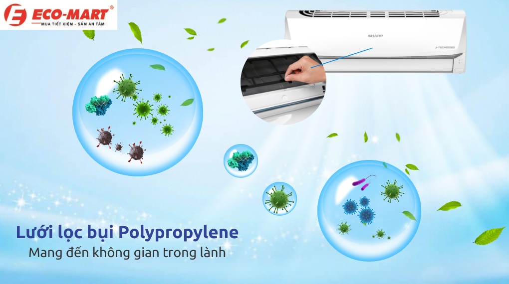 Lưới lọc bụi polypropylene được trang bị trên điều hòa Midea này để loại bỏ các tác nhân gây dị ứng như phấn hoa, lông thú, bụi bẩn, và các hạt nhỏ khác trong không khí. Điều này giúp không gian sống trở nên trong lành hơn, đồng thời đảm bảo an toàn sức khỏe cho cả gia đình. Việc sử dụng lưới lọc bụi này không chỉ giúp ngăn chặn sự xâm nhập của các chất gây dị ứng mà còn giúp cải thiện chất lượng không khí bên trong nhà. Đây là một giải pháp hiệu quả để bảo vệ sức khỏe của mọi người, đặc biệt là những người dễ bị dị ứng và bệnh lý về hô hấp.