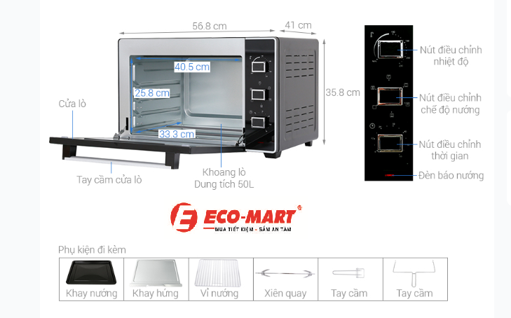 Đèn chiếu sáng: Lò được trang bị đèn chiếu sáng bên trong, giúp người dùng dễ dàng quan sát thực phẩm mà không cần mở cửa lò, tránh thất thoát nhiệt.