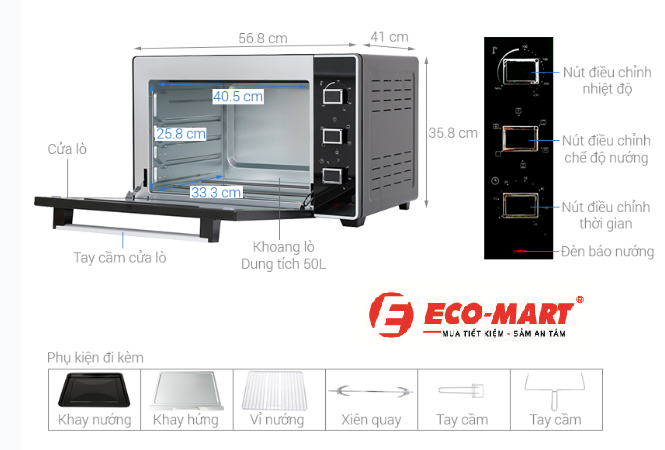 Tiết kiệm năng lượng: Với công nghệ đối lưu và công suất mạnh mẽ, lò giúp nấu chín nhanh chóng và tiết kiệm điện năng hơn so với các lò nướng thông thường.