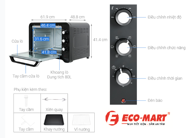 Bảng điều khiển cơ: Lò được trang bị các núm vặn điều chỉnh cơ học dễ sử dụng, giúp bạn dễ dàng điều chỉnh nhiệt độ, thời gian và chế độ nướng một cách nhanh chóng và chính xác.