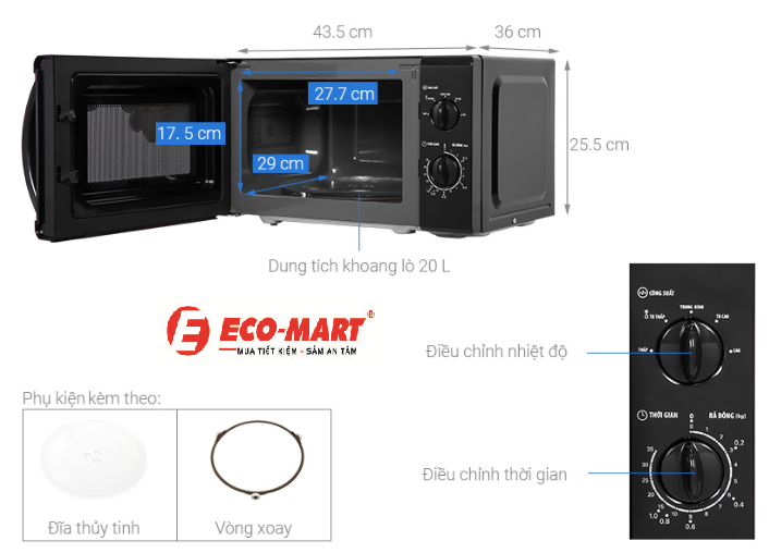 Dung tích: 20 lít, phù hợp với gia đình từ 2-4 người, có thể nấu nướng các món ăn đơn giản hoặc hâm nóng thức ăn.