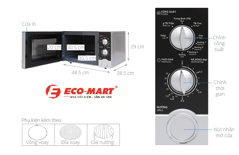Không có chức năng nướng: Phiên bản này không có tính năng nướng, phù hợp cho những người chỉ cần một thiết bị để hâm nóng, rã đông, và nấu ăn cơ bản mà không yêu cầu nướng thực phẩm.