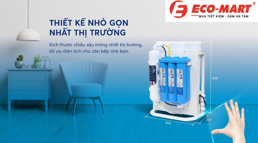 + Máy lọc nước Karofi KAQ-U05 có kích thước 304x209x439mm, phù hợp với mọi không gian.
