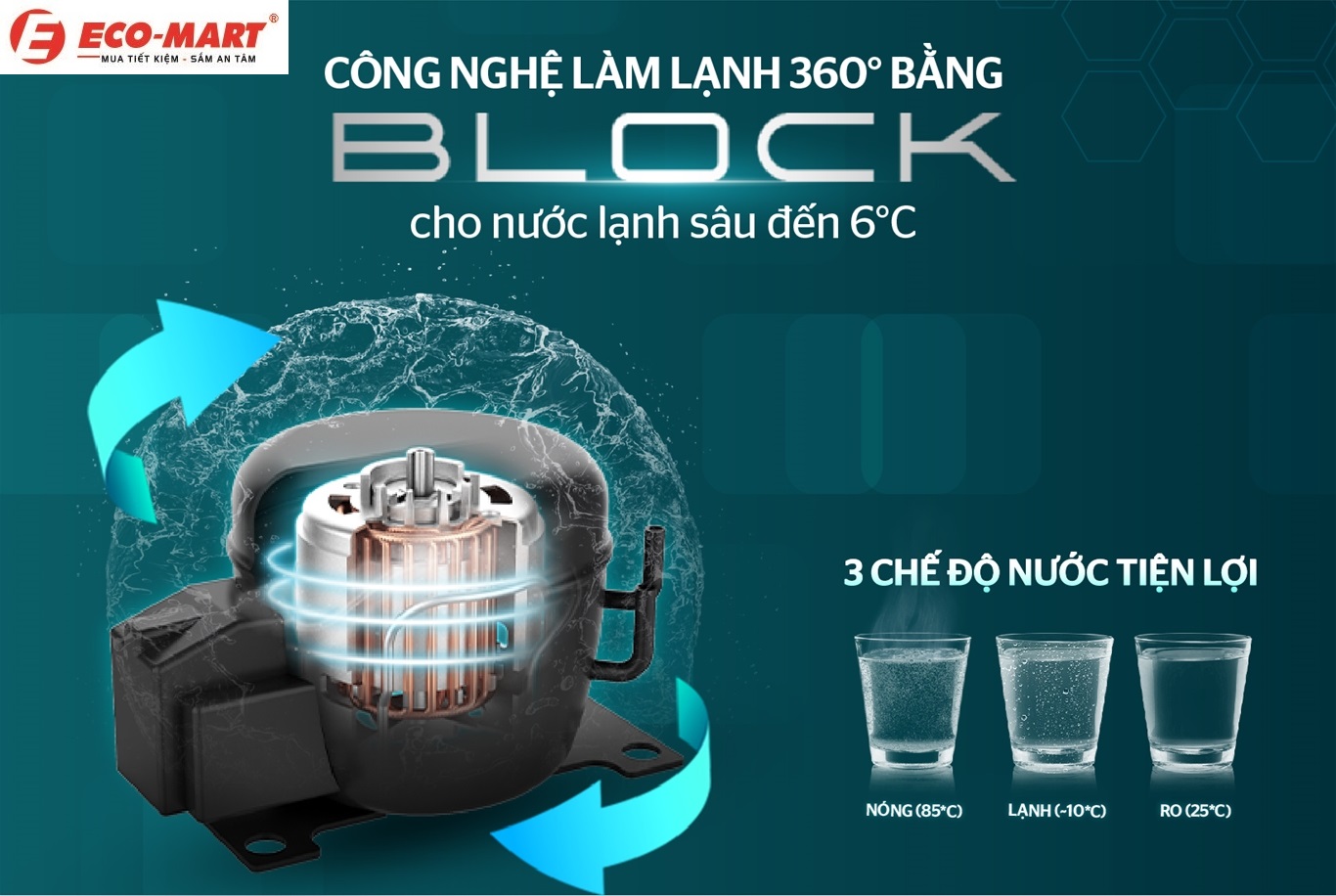 Công nghệ block được sử dụng trong máy giúp lọc nước hiệu quả hơn, tăng cường khả năng loại bỏ các chất độc hại và bảo đảm nguồn nước sạch cho người sử dụng.
