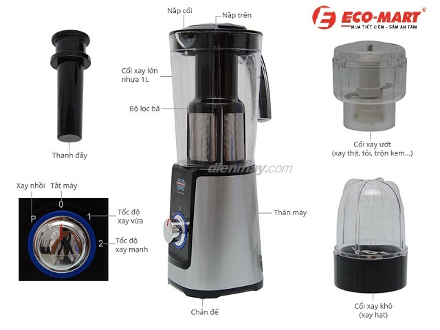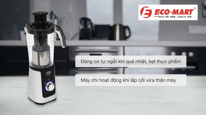 - Khóa an toàn: Máy chỉ hoạt động khi cối được lắp đúng vị trí.