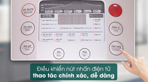 - Nút nhấn vật lý cùng màn hình hiển thị rõ ràng, dễ dàng theo dõi quá trình nấu.