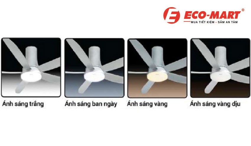 + Quạt được trang bị đèn LED nhiều mức ánh sáng và sự đa dạng về màu sắc, sản phẩm không chỉ là một công cụ làm mát mà còn là một phần trang trí sang trọng cho không gian gia đình.