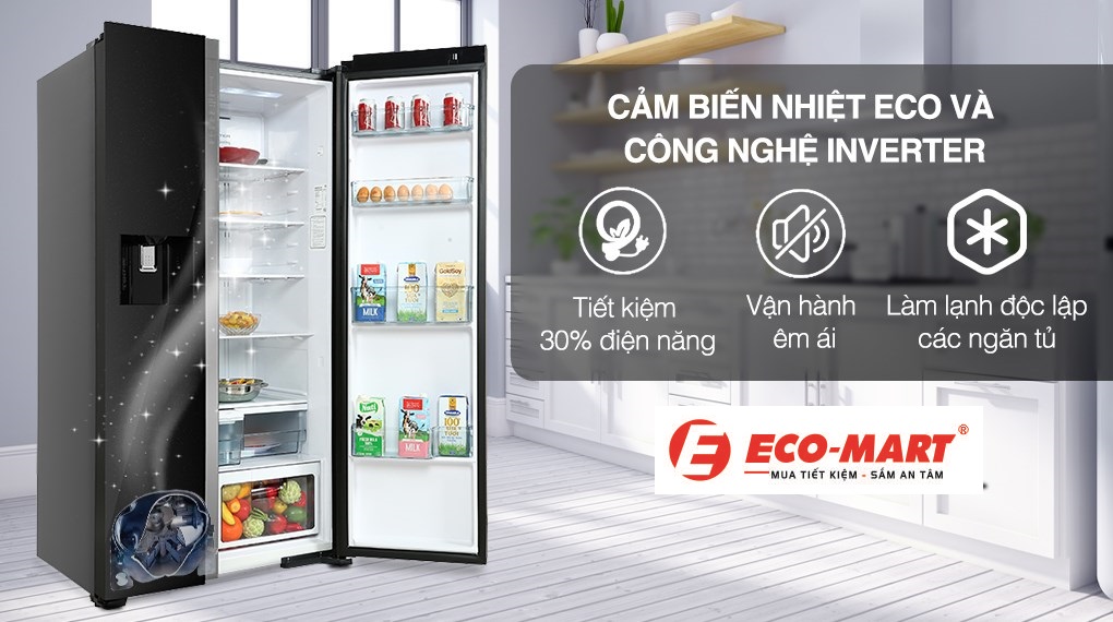 Tính năng cảm biến nhiệt Eco là một điểm đáng chú ý khác của tủ lạnh này. Thông qua việc theo dõi thói quen sử dụng của người dùng, cảm biến này tự động điều chỉnh nhiệt độ để tiết kiệm điện năng mà vẫn đảm bảo hiệu suất làm lạnh. Điều này không chỉ giúp giảm chi phí điện hàng tháng mà còn giữ cho thực phẩm được bảo quản ở nhiệt độ lý tưởng.
