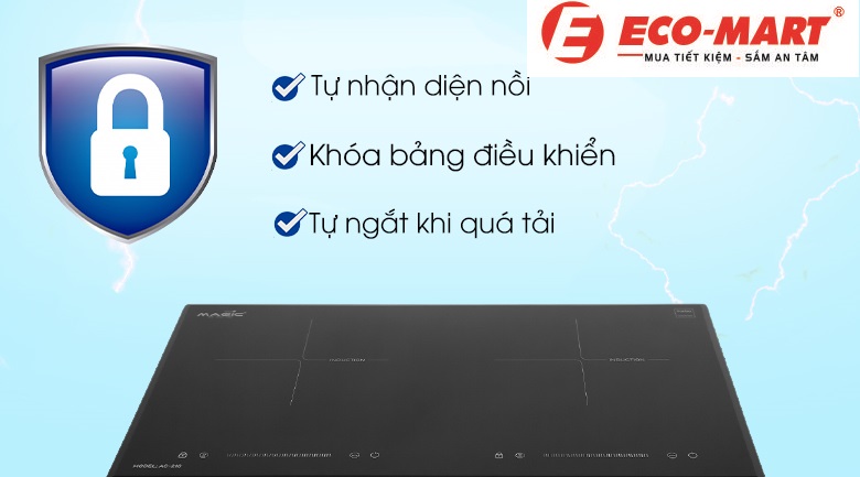 Bếp từ Magic AC-210 tích hợp nhiều tính năng an toàn với người sử dụng