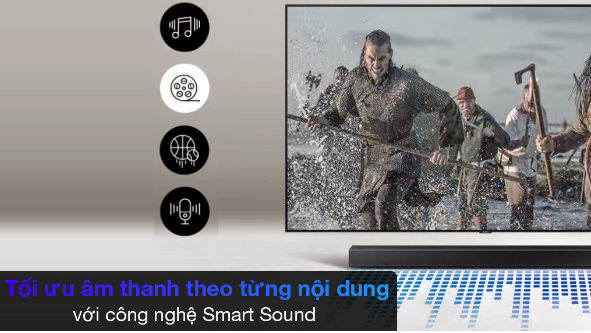 - Smart Sound: Tự động điều chỉnh âm thanh phù hợp với nội dung trình chiếu, từ trận đấu bóng đá đến lời thoại tinh tế trong phim.