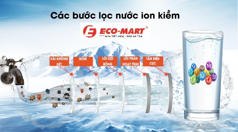 Nước kiềm giàu hydro: Nước sau khi lọc và điện phân có chất lượng cao, giàu khoáng chất và hydro, giúp cải thiện sức khỏe và tăng cường năng lượng.